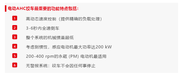 挪威是海底石油工业高科技研发的领先国家,其石油设备必须在深达3000米的海底工作。挪威的专业领域之一是配备主动升沉补偿 (AHC) 技术的绞车,该技术被用于起重设 备,通过主动补偿相对于海床的所有运动来降低海浪影响。AHC绞车系统能补偿任何导致电缆突然松弛或拉扯的起伏或剧烈的海上运动, 从而实现安全可控的负载部署和回收,提高安全性并降低与天气相关的停机时间。AHC绞车系统的发展趋势是更大的尺寸和电气驱动。