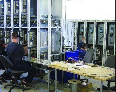 安装在开关柜中的丹佛斯VACON® 有源前端/共直流母线模块。丹佛斯的有源前端技术符合最严格的谐波失真要求,经过挪威分级机构挪威船级社 (Det Norske Veritas) 认证。如果需要,它还可将绞车制动产生的能量回馈到船舶的电网中。