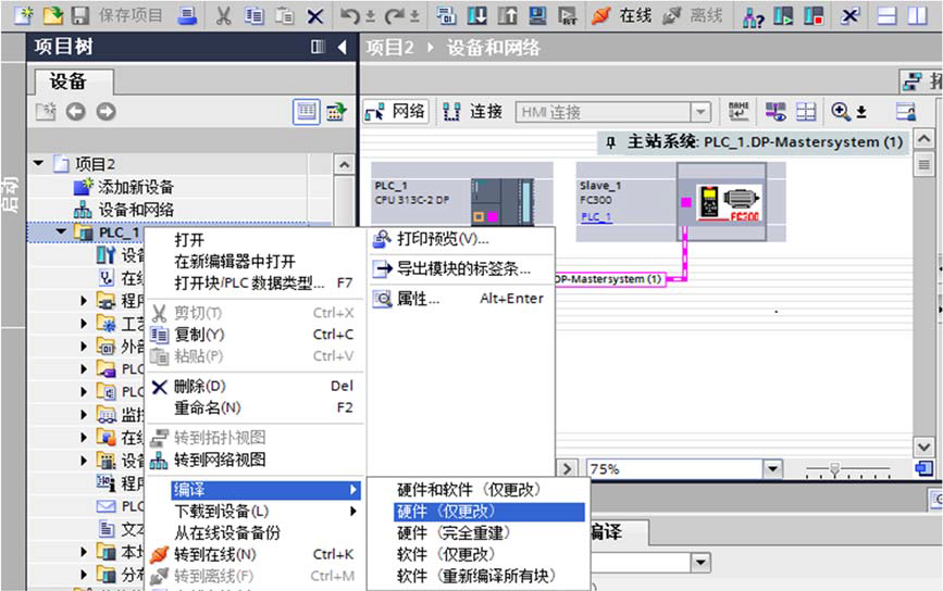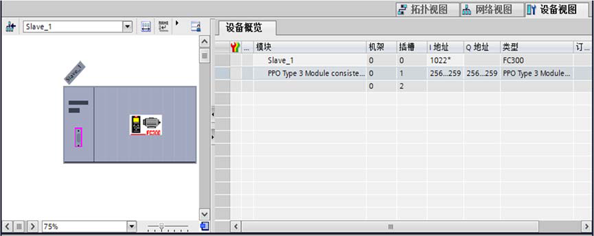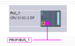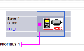 将变频器 FC300 拖动到 PROFIBUS_1 连接线处后,PLC 和变频器连接在一起,FC300 显 示为未分配。