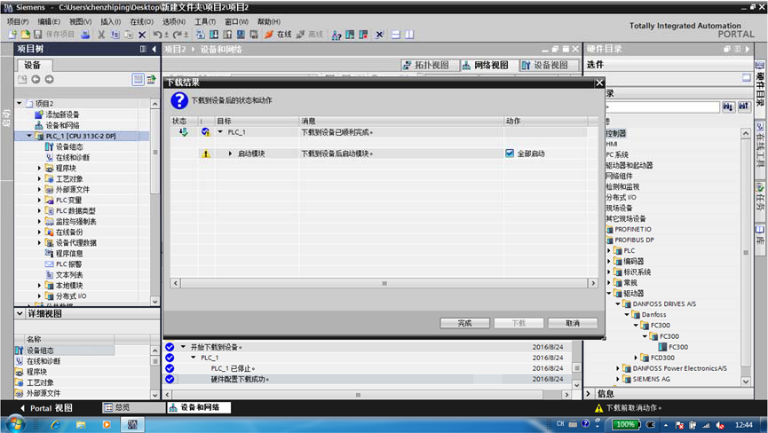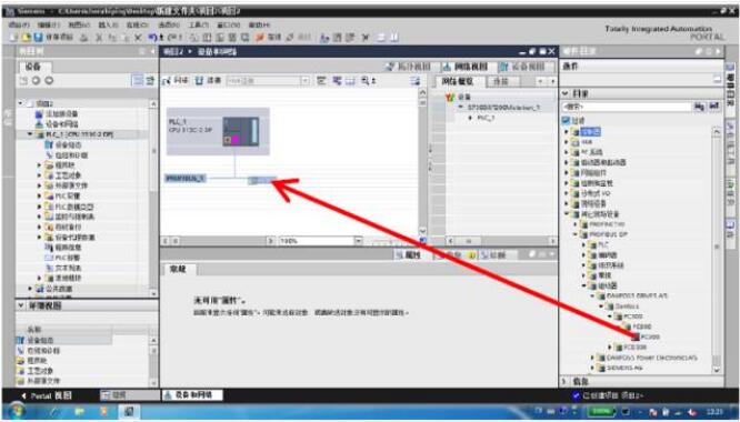 七、:配置榴莲APP官方下载进入网站(进入‘网络视图’-打开右侧‘硬件目录’-选择‘其他现场 设备’-‘PROFIBUS DP’-‘驱动器’-‘DANFOSS DRIVESA/S’-‘DANFOSS’-‘FC300’-‘FC300’-‘FC300’),将其如图七所示拖动。