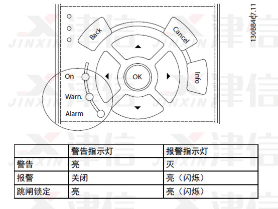 除了 LCP 上的文字和报警代码外,还有 3 个状态指示灯。
