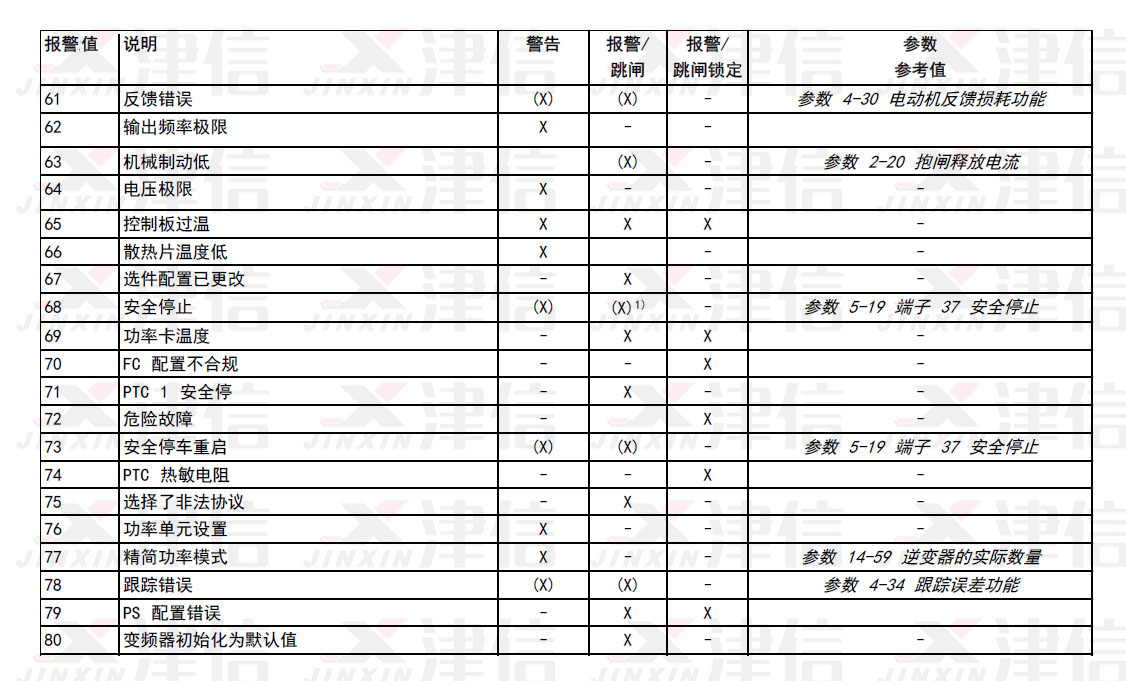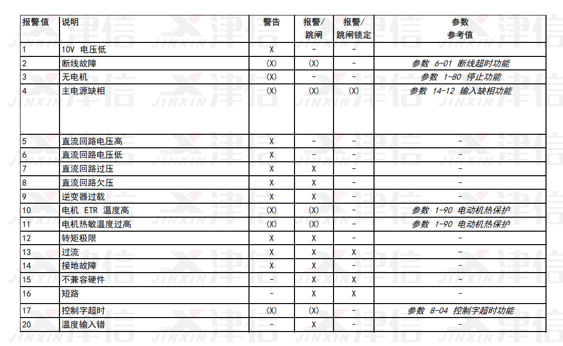 当即将发生报警状况或存在异常运行条件并可能导致变频器发出报警时,将发出警告。异常状况消失时,警告会自行清除。