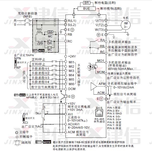 l VFD-E 交流马达驱动器内部并无安装制动电阻,在负载惯性大或频繁启动/停止
