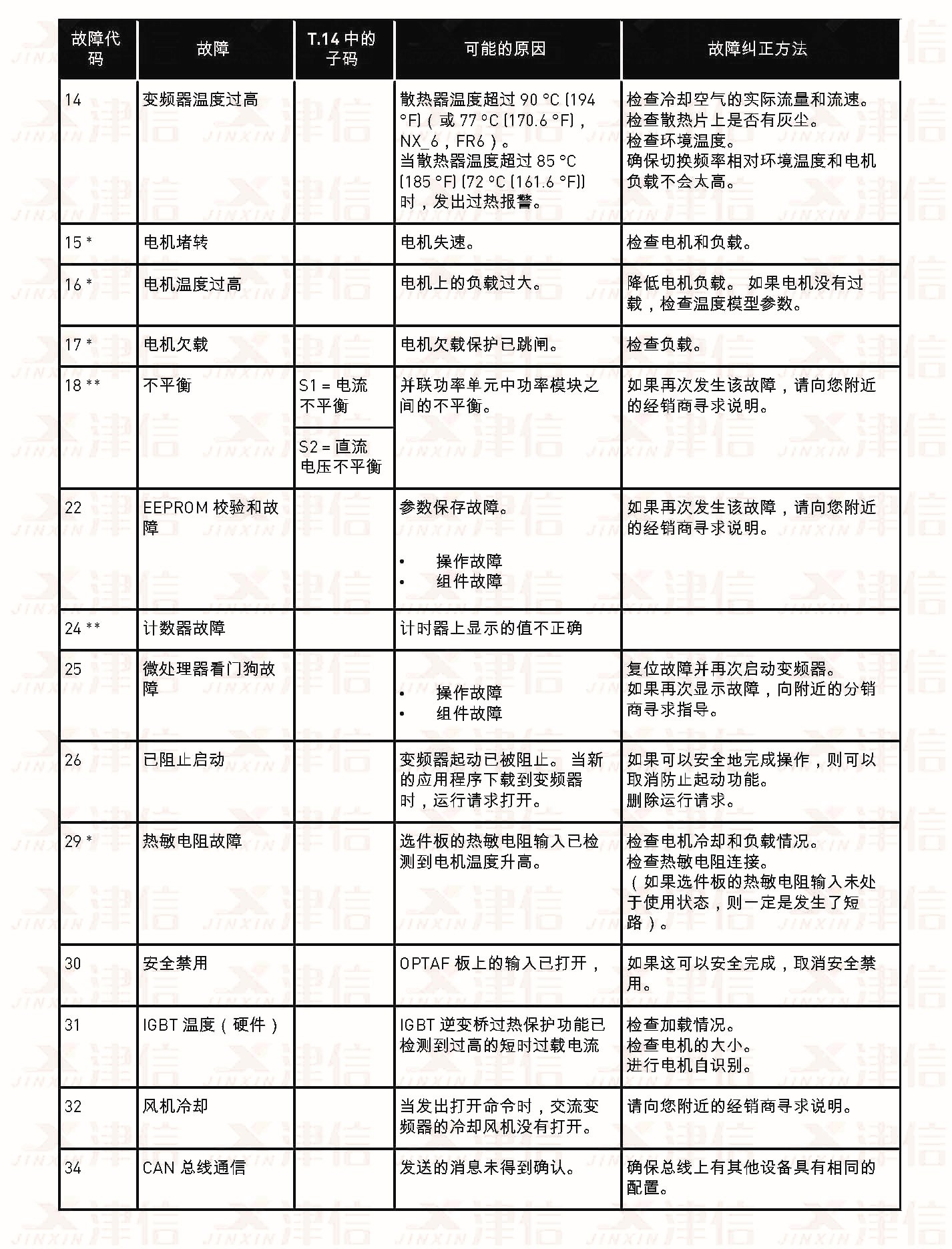 三、伟肯NX变频器故障代码FT14,15,16,17,18,22,24,25,26,29,30,31,32,33,34