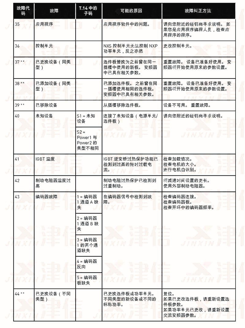 四、伟肯NX变频器故障代码FT35,36,37,38,39,40,41,42,43,44