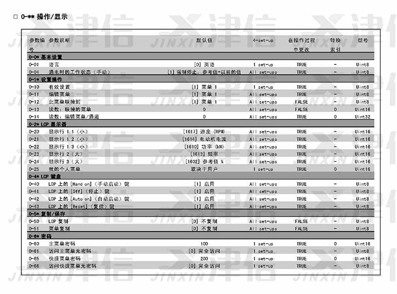 1、0-** 操作/显示参数设置