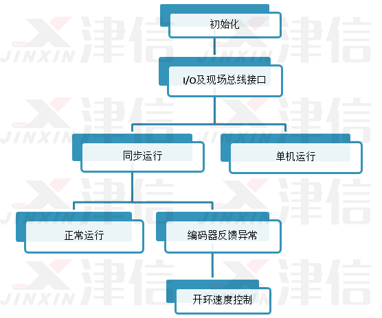同步运行模式时,变频器根据当前输出频率和编码器反馈,自动判断编码器信号是否正常。一旦发生编码器故障,不能发生大的转速波动,更不能停机,而是自动切换为开环转速控制继续运行,并发出信号通知上位机。