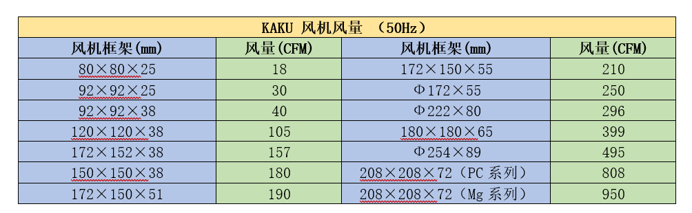 下表列出市场上比较常见的卡固(KAKU)风机的数据,作为榴莲视频导航污下载在线观看上面例子的风机选型参考。
