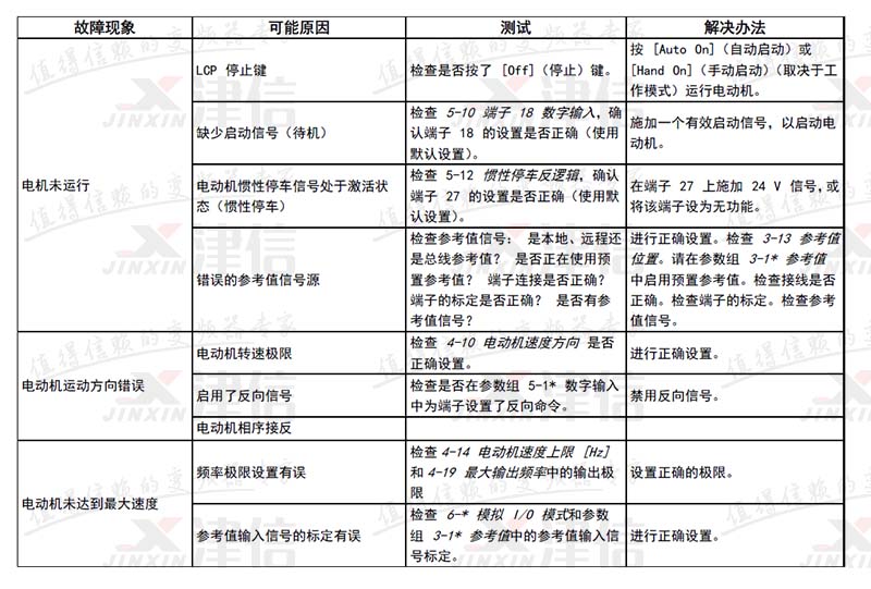 31 | V 相缺相 | X | X | 电动机 V 相缺失。请检查该相。 | |