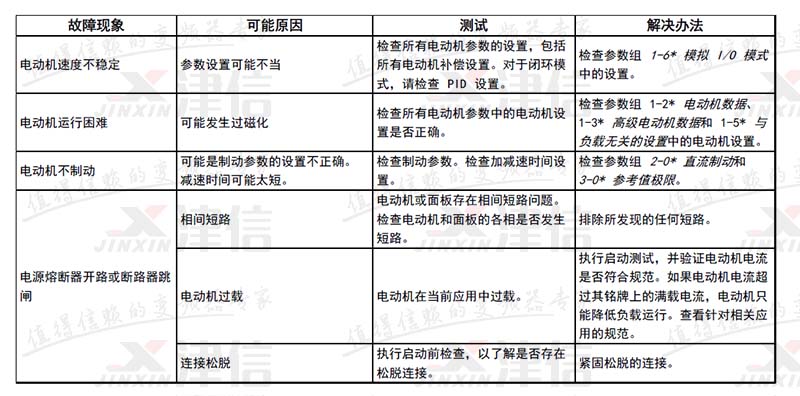 28 | 制动检查 | X | X | 没有连接制动电阻器,或者它不能工作。 | |