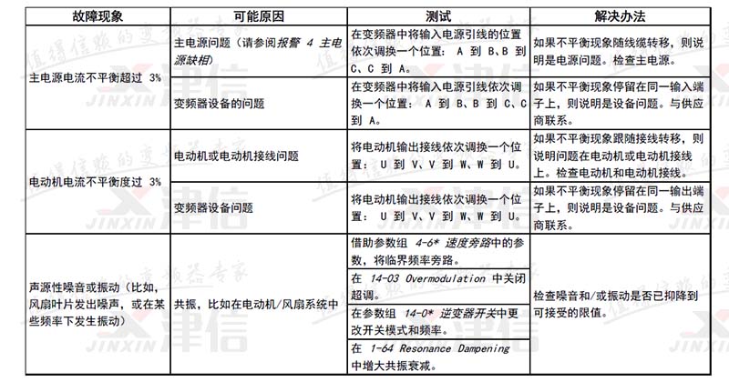 3 | 无电动机 | X | 变频器的输出端子上没有连接电动机。 | ||