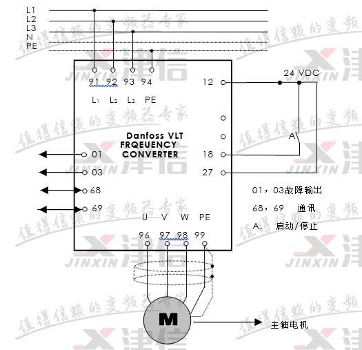 变频器与主轴电机的系统组成及控制端子接线如图所示: