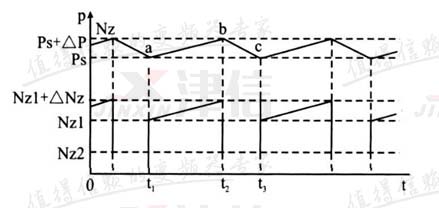 时(t1),空压机输出频率开始下降,由于惯性压力还会有一点超调量Δ
