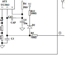 然后仔细察看开关电源的线路图,发现在开关电源电流检测端,UC3842的3脚,还接有另外一路保护,芯片电源脚经过稳压管D2接到3脚,这部分线路应该是开关电源自身的过压保护。静态测试稳压管特性良好,用稳压电源通电测量也正常,稳压值在21V左右(电源电压17V),拆掉这个稳压管后给机器送电,测电流波形居然回到正常的0.3A。看来是这个稳压管特性不良引起的问题。重新安装一个21V的稳压管,开机试运行一上午正常,没有再出现以前的故障。最后送交客户,经几天实际运行,工作正常,证明变频器已完全修复。