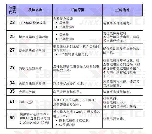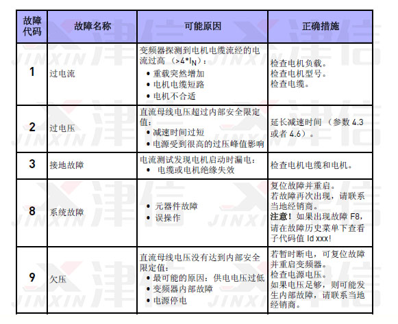 榴莲视频污版APP在线下载的故障和时间记录存储在故障历史子菜单内,用户可以浏览该菜单。下表列出了不同的故障代码及其发生原因和更正措施。