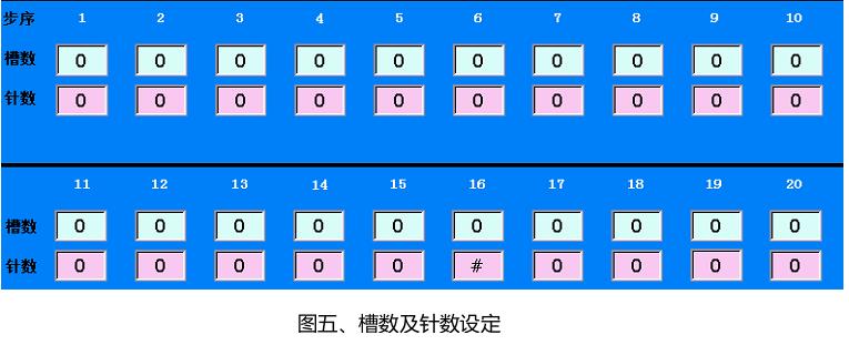 用户可以通过HMI一键生成“逐槽绑”数据,也可以自行设定绑扎槽位顺序,自定义每一槽针数,还可以设定定子分度方向,从而实现逐槽绑、花式绑、正绑、反绑。设定界面如图五所示。