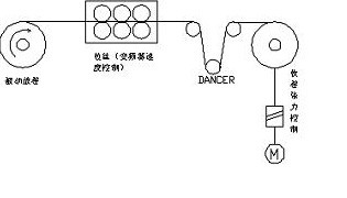 3,收卷:线速度同步+恒张力控制,有跳舞轮位置反馈,变频器作闭环工艺控制,控制跳舞轮的位置。