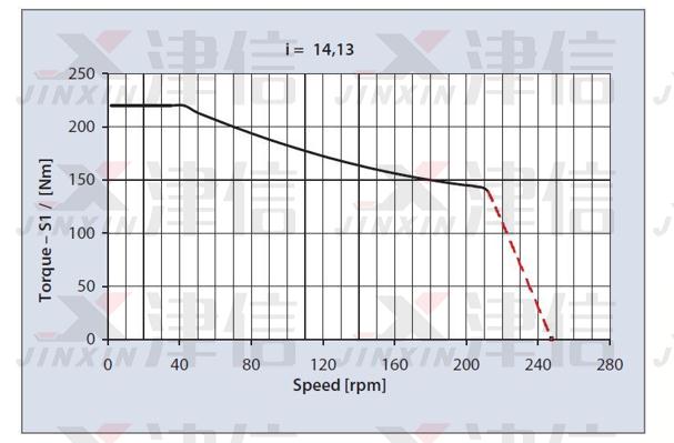 参考OGD电机选型样本,OGDSK214K13电机的转速-转矩特性如下: