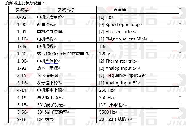 另一台变频器做从机,采用丹佛斯特有的脉冲主从控制方式,跟随主机输出。实践证明此种控制方式生立,两台电机转速同步性非常好,转速只有很小的误差。唯一的缺点是从机的报警状态无法被系统检测到。
