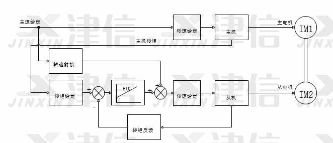 这种控制方式相对来说比较简单,缺点是高速加减速时从机的响应可能滞后,负载分配不平衡。