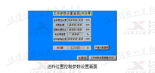 改造系统采用三台Danfoss变频器和两块MCO305,以及一个台达HMI。系统采用RS485通讯。主机旋转采用4kW变频器直接拖动,通过HMI直接设定其运行频率。送料位置控制参数如下图所示。这些参数在变频器第19组参数开放出来,之所以采用HMI,主要是为了方便用户进行操作。